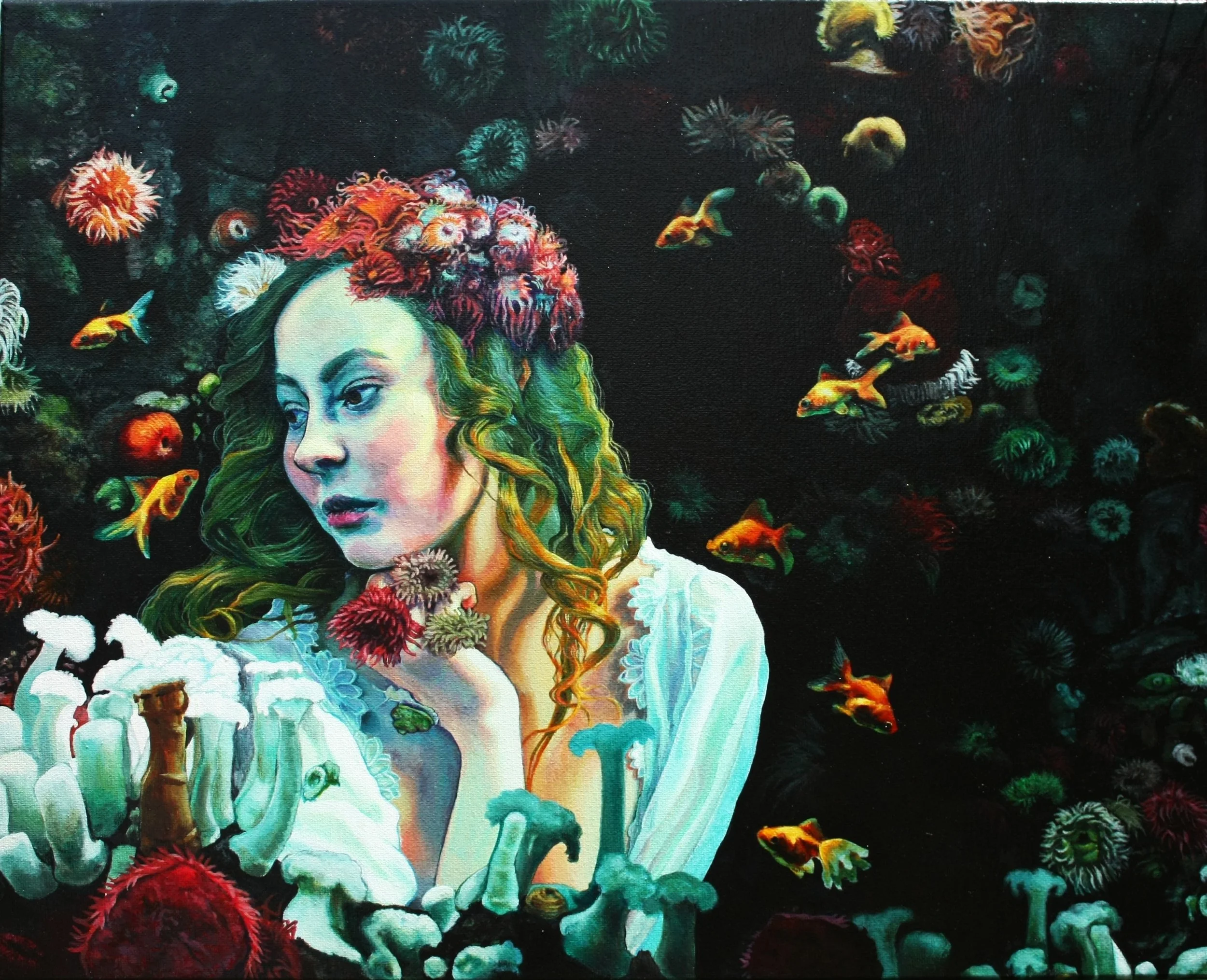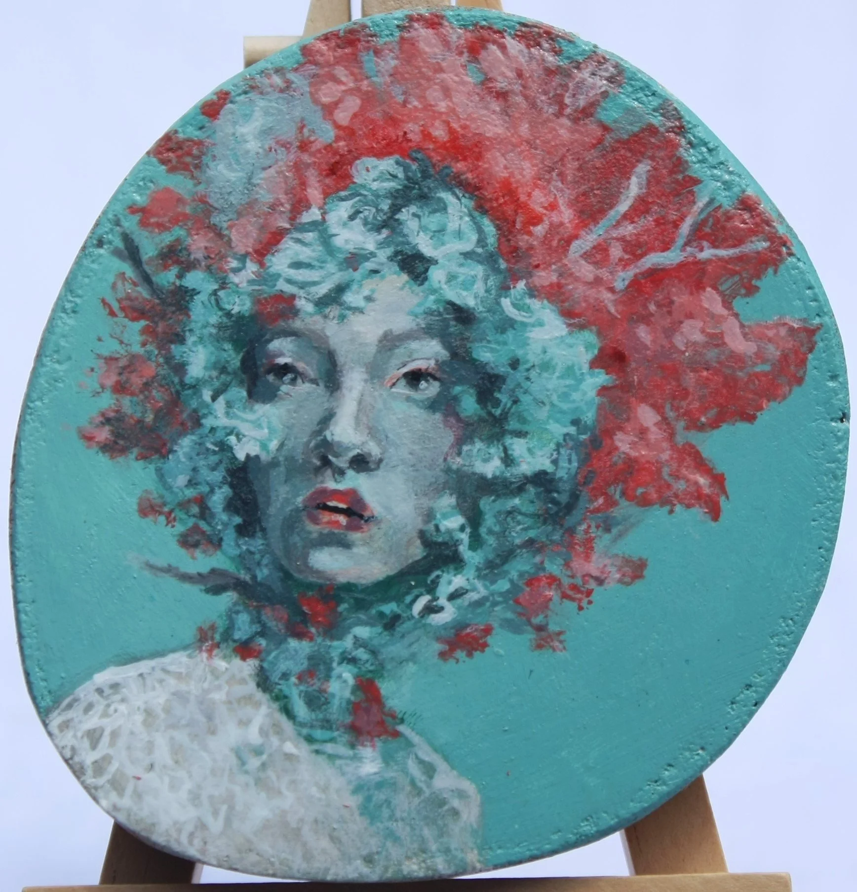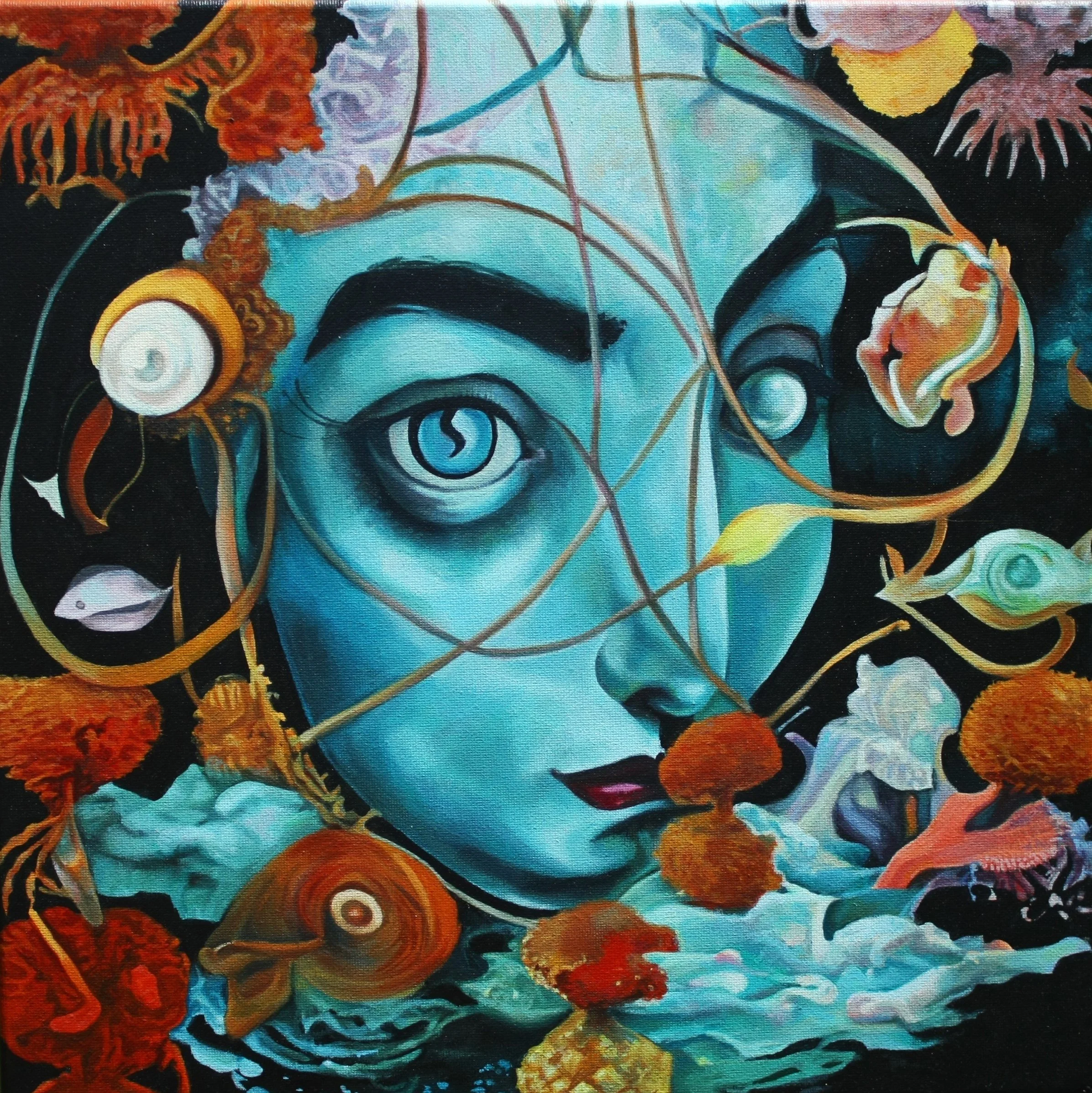 Vibrant canvases and uniquely painted repurposed wood where the surreal meets the whimsical. Explore the storytelling art of T. Lambrecht, featuring female portraits, nature’s embrace, and the magic of the aquatic realm.
